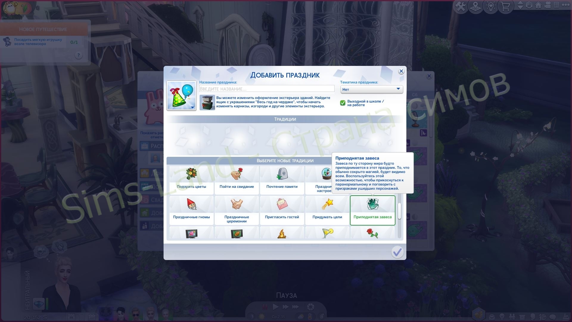 - Симы могут временно получить возможность видеть призраков во время праздников с помощью праздничной традиции «Приподнятая завеса».