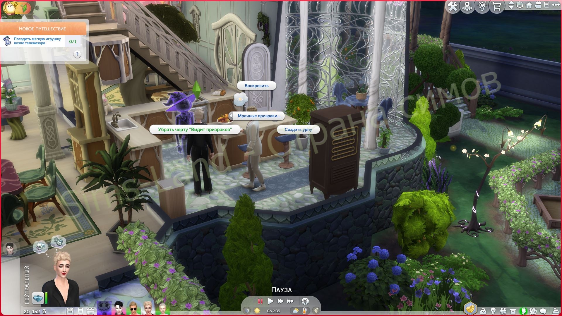 - Выберите тип призрака → позволяет превращать симов в призраков одним щелчком мыши