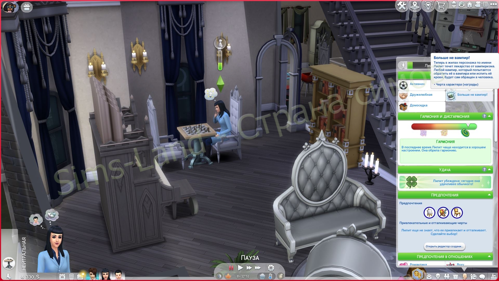 - Если вы просто примените черту через КЦ и удалите вампиризм – то при заражении излечение другого сима может не произойти технически. Уведомления пройдут, но вампиром он останется. Нужно пить лекарство первому симу.