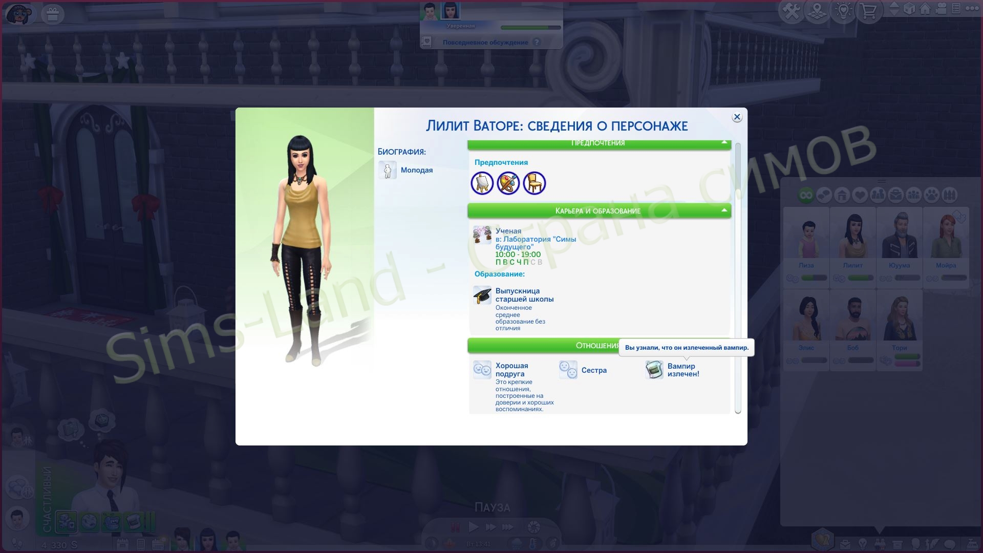 Мод Sims 4 «Заразное лечение от вампиризма»