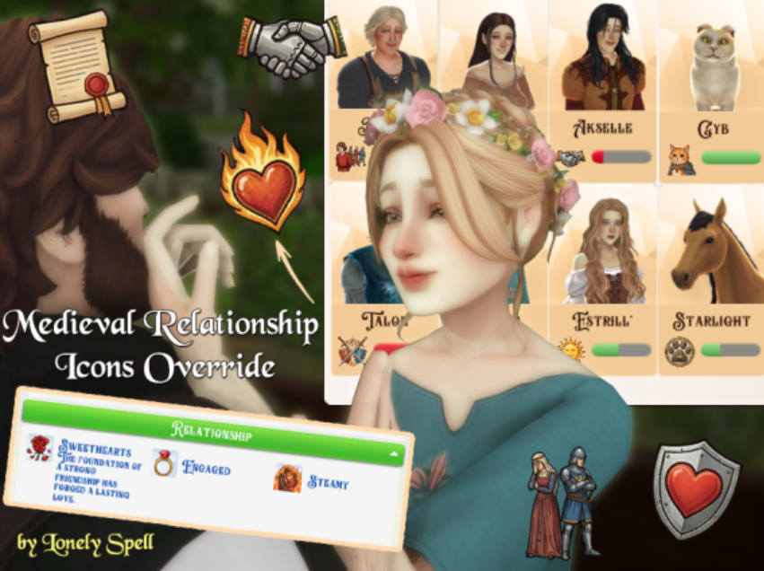 - Оригинальное название: [LonelySpell] Medieval Relationship Icons Override