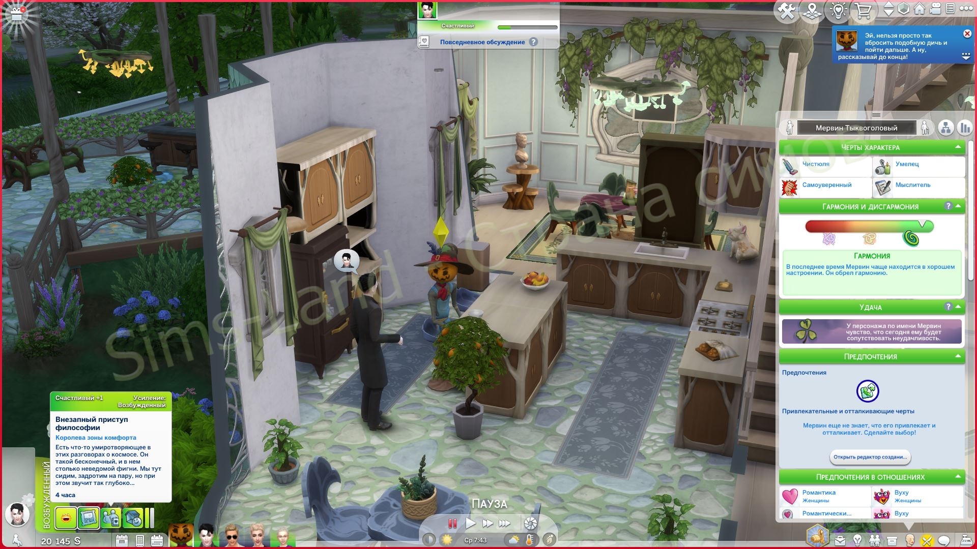 Для симов, которые обязательно отменяют планы, а потом сразу чувствуют облегчение. Симы, которые прочитают каждую табличку в музее, которые будут спорить с книгами 40 минут, а потом уйдут домой пораньше, потому что их социальная батарея сказала: «хватит».