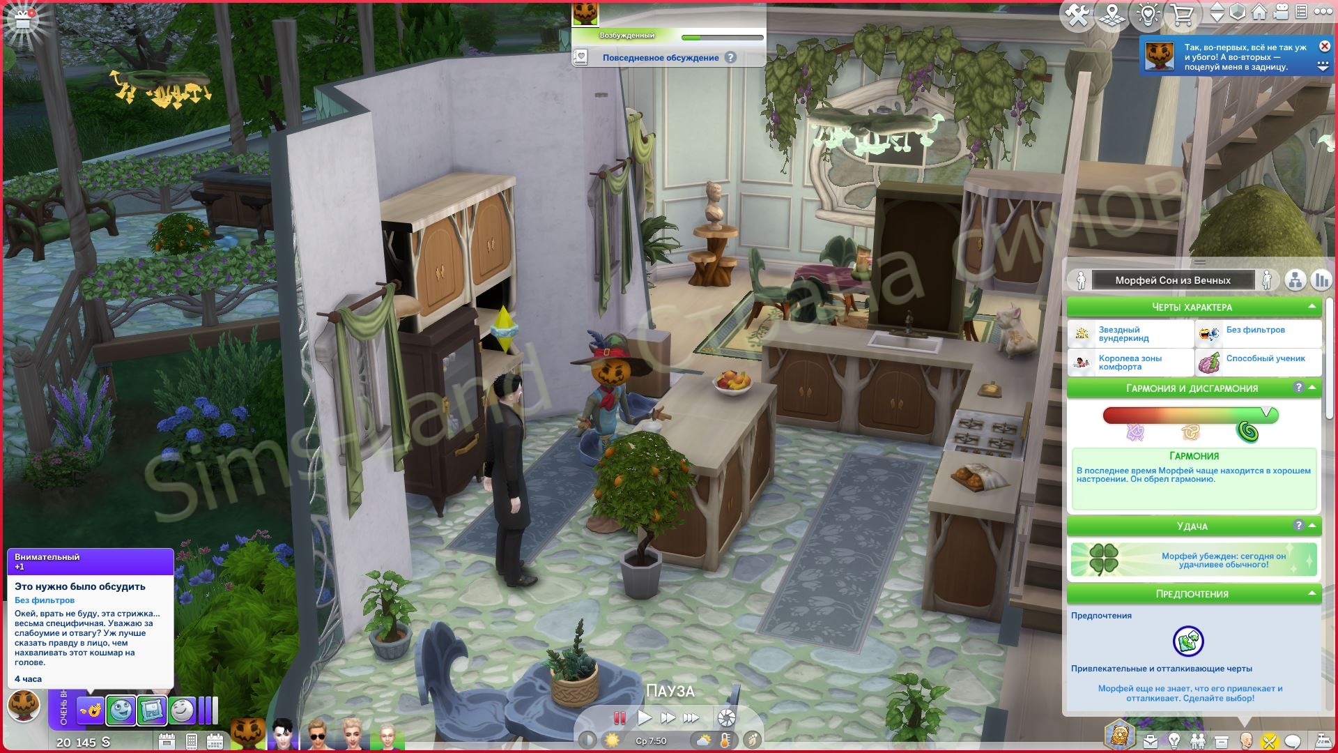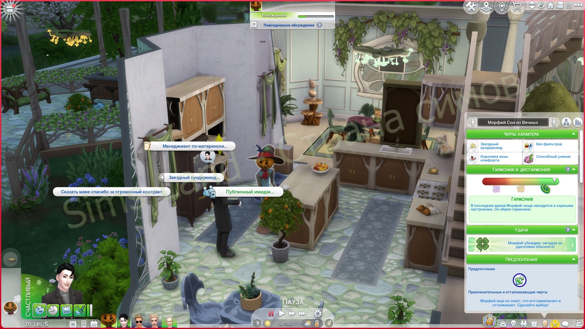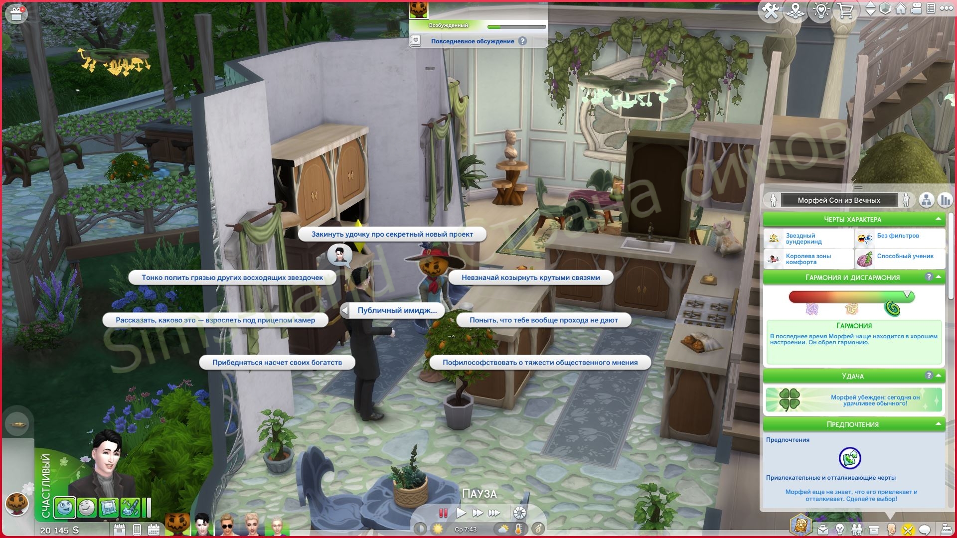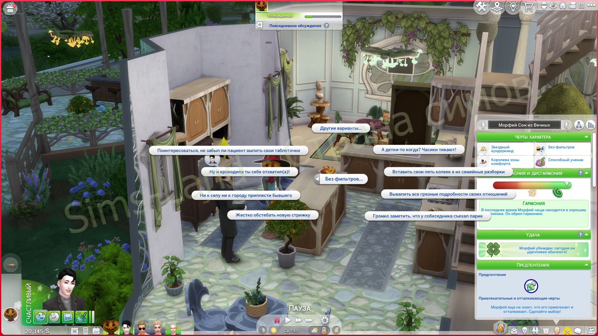В каждом взаимодействии в этой группе реакция окружающих и самого сима разная. Тон меняется в зависимости от того, что вы выбираете. Некоторые разговоры кажутся поддерживающими. Некоторые напряжёнными. Некоторые — соревновательными. Некоторые кажутся запутанными в лучшем смысле.