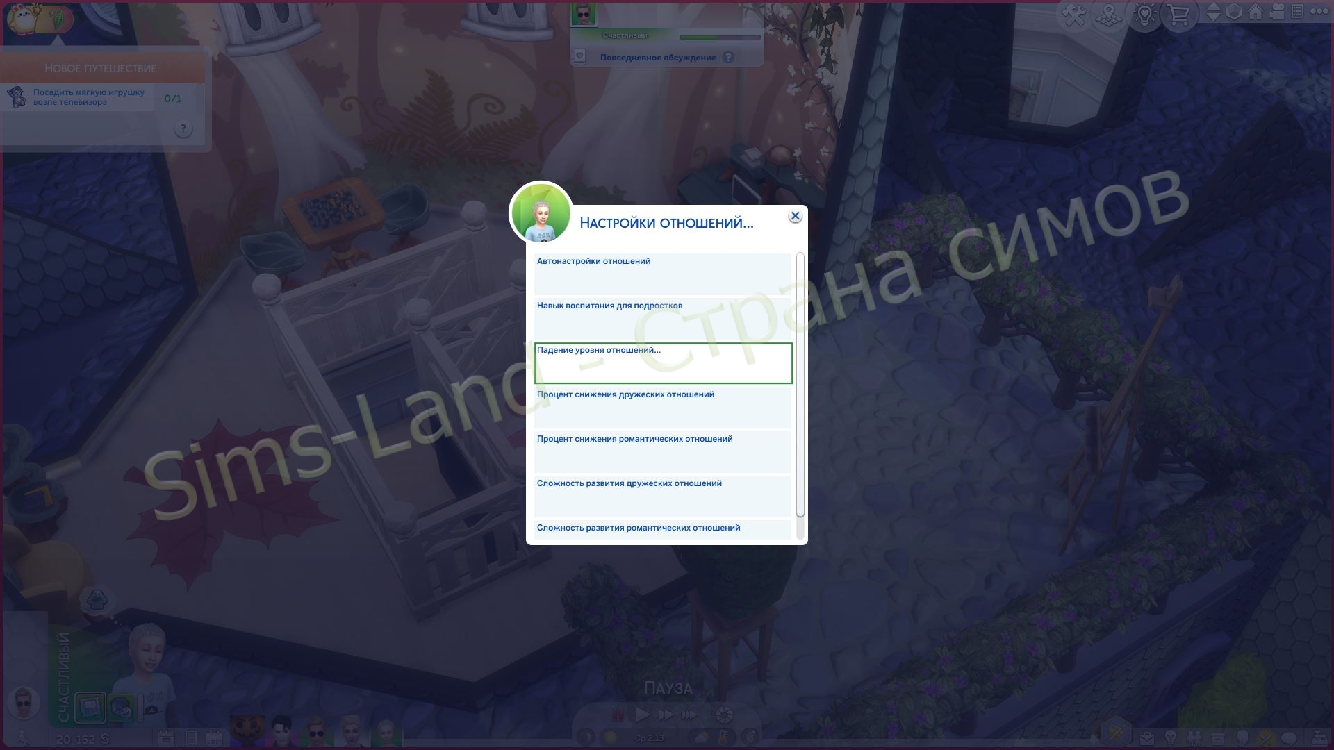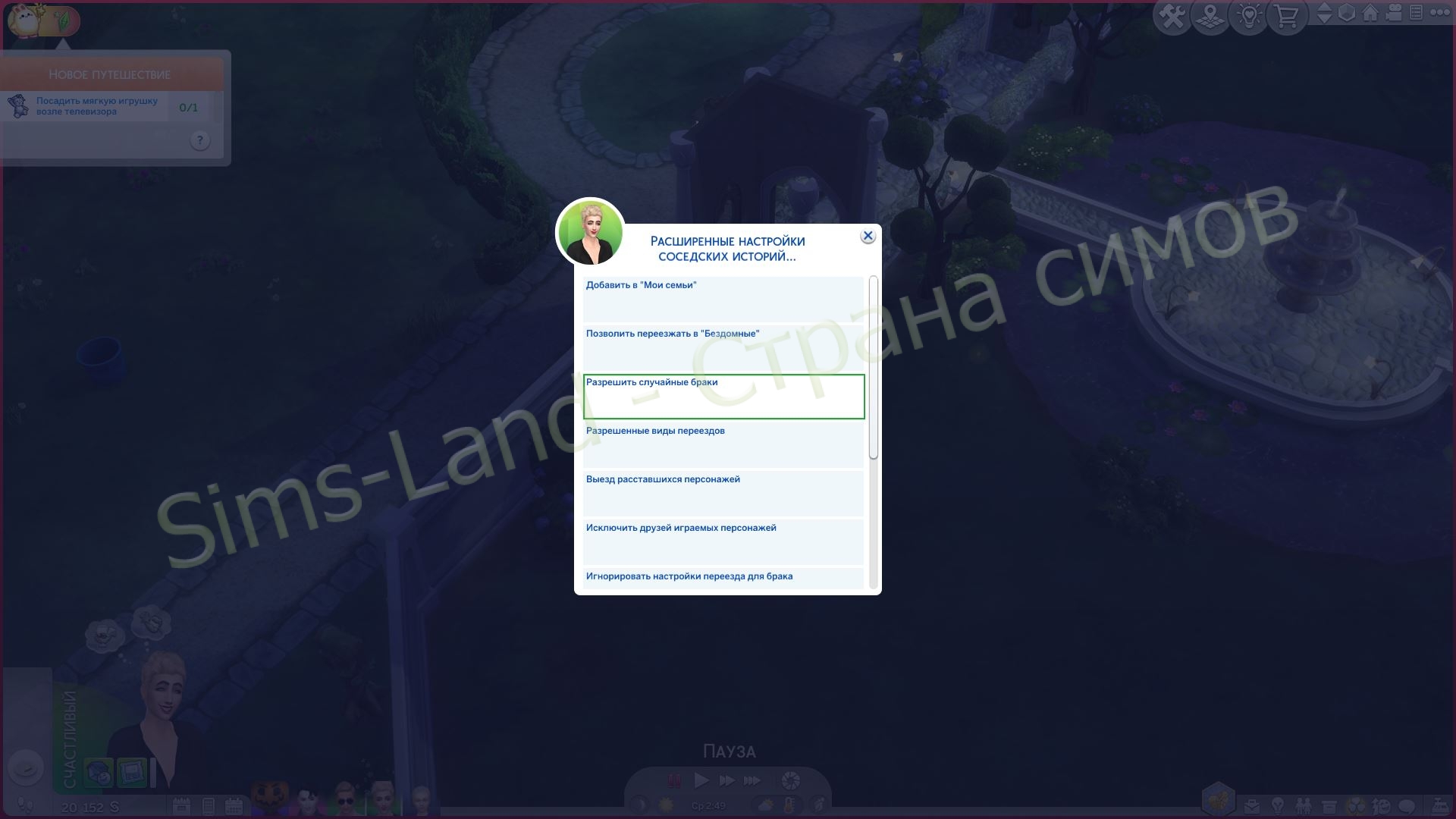 Новые взаимодействия, предлагающие персонажам вступить в брак или переехать к своим близким, также находятся в разделе «Отношения». Это вызовет свадьбу или переезд.