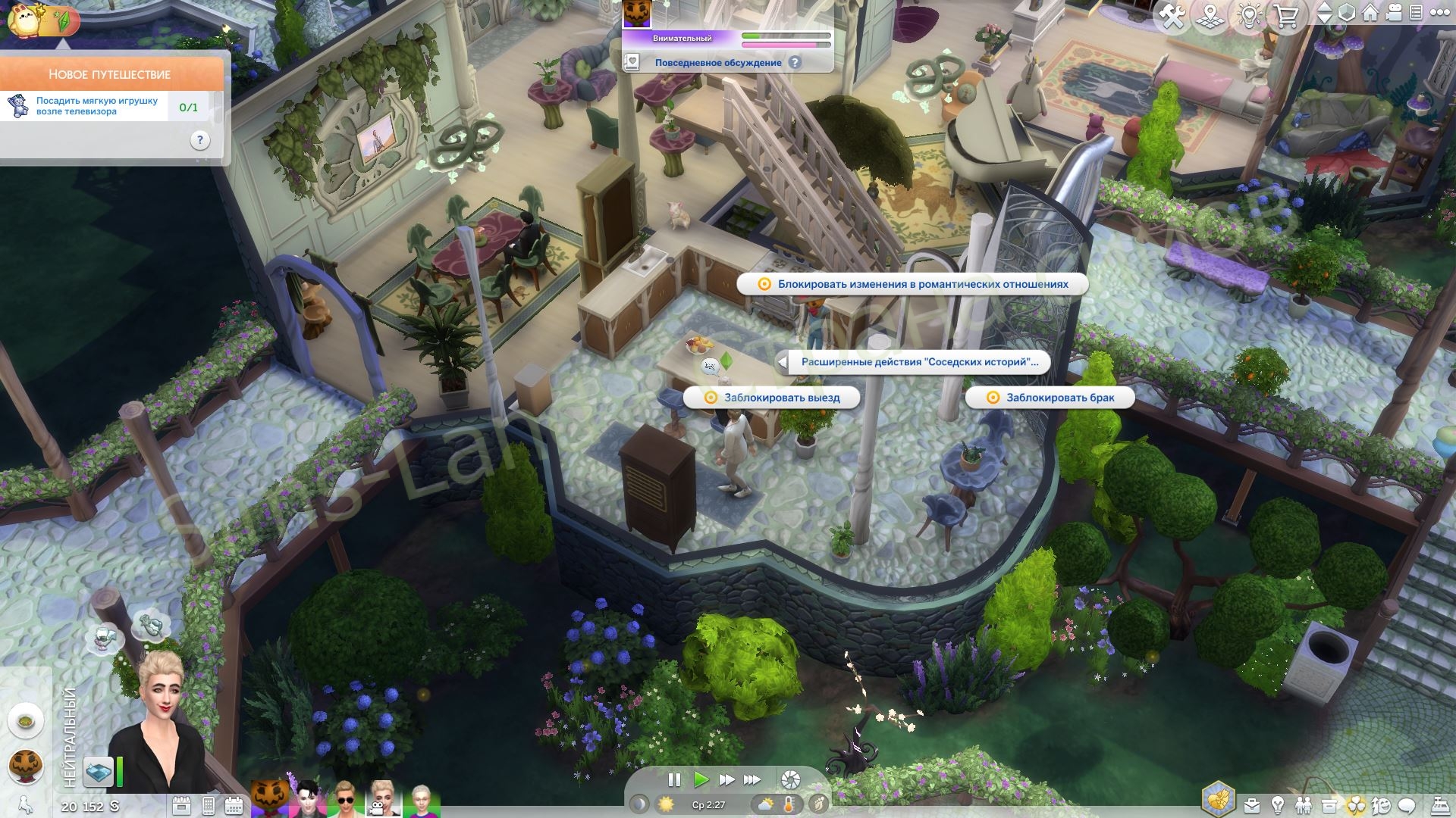 С помощью взаимодействий в меню действий отдельные персонажи могут быть заблокированы от выезда из дома, вступления в брак или изменения в романтических отношениях. Остальные члены семьи могут создавать соседские истории, основанные на домашних правилах, но персонаж с блокировкой не будет выбран для историй.