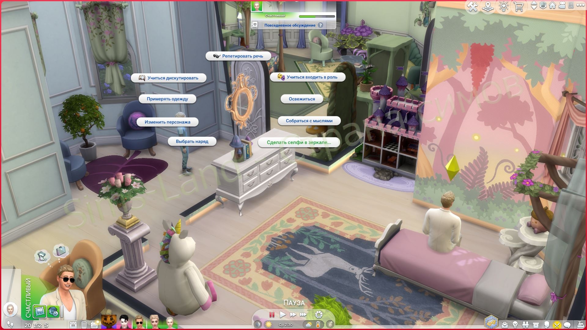 Чтобы фотографии с зеркалом казались более интересными, поэтому есть два основных взаимодействия. Во время этих взаимодействий ваш сим получит несколько баффов.