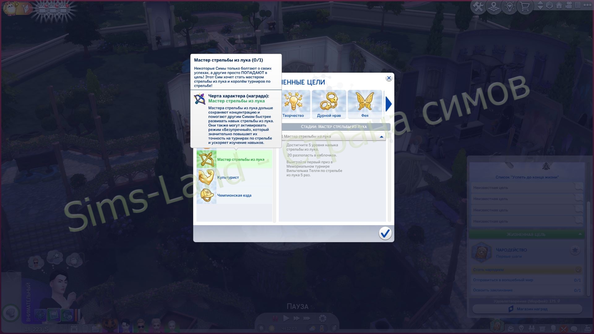 Мод Sims 4 «Жизненная цель Мастер стрельбы из лука»