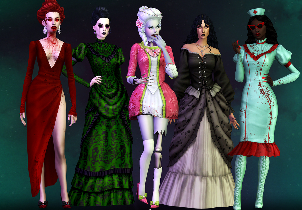 Планируете устроить потрясающую вечеринку в Sims 4? Этот набор наш любимый в течение нескольких лет! В нем есть пять жутких стилей: вампир, графиня, зомби, принцесса и доктор. С 8 жуткими платьями, макияжем лица (эффект крови) и очаровательными туфлями, это один из моих любимых страшных CC!