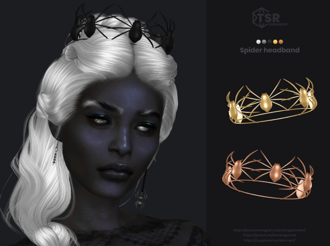 Эта корона уникальна, потому что сделана из крошечных пауков, которые идеально подходят для того, чтобы придать вашему персонажу жуткую атмосферу и в то же время напугать любых сим-арахнофобов! Вы можете использовать его как для женского, так и для мужского пола.