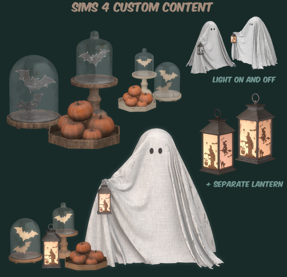 Украшение на Хэллоуин — это коллекция жутких и призрачных предметов декора, которые помогут вам украсить вашу кроватку в The Sims 4. В нем содержатся две летучие мыши, привидение с фонарем и маленькая тыква. Предметы декора совместимы с базовыми играми, поэтому вам не придется загружать дополнительные пакеты расширения.
