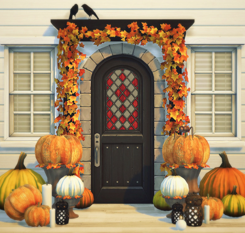 Насколько красива эта осенняя арка из листьев для вашей входной двери? Она идеально подходит как для симов, которые празднуют Хэллоуин, так и для тех, кто просто любит осень. В комплекте только арка для дверцы, а также маленькие и большие горшки. Если вам тоже нужны тыквы, вам нужно будет скачать их отдельно, на которые создатель дал ссылку на странице загрузки.