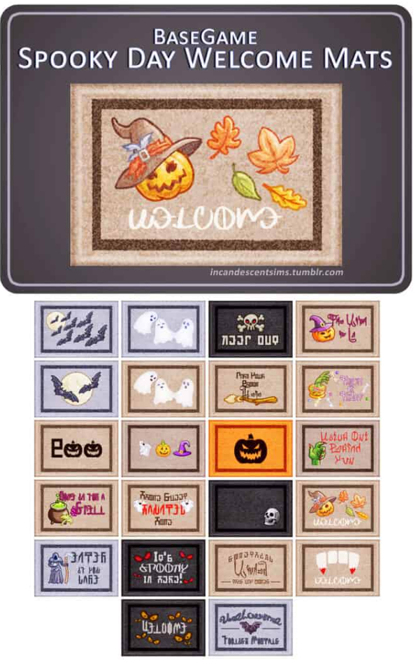 22 приветственных коврика для симов, которые любят Хэллоуин, или для тех, кто просто хочет добавить немного жуткости в свой дом. Есть хорошее сочетание ковриков с разным дизайном, некоторые милые, а некоторые жуткие.