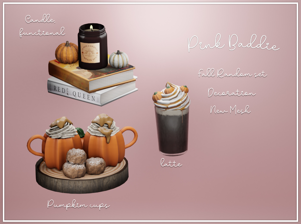 Осенний сезон приятен не только из-за всего, что связано с Хэллоуином, но и из-за теплого тыквенного латте и сливок в чашках, которыми наслаждаются все. Привнесите это ощущение в свою игру с помощью этого осеннего случайного набора.
