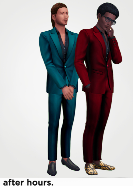 Если вы ищете роскошный мужской костюм Sims 4 для улучшения гардероба вашего сима, обратите внимание на этот набор. Он изготовлен из богатой вельветовой ткани и отличается обтекаемым кроем, контрастными лацканами, подходящим жилетом и стильным свободным галстуком для изысканного и в то же время современного образа. Он доступен в 15 ярких оттенках, включая глубокий темно-синий, изумрудно-зеленый, классический черный, слоновую кость и бордовый.