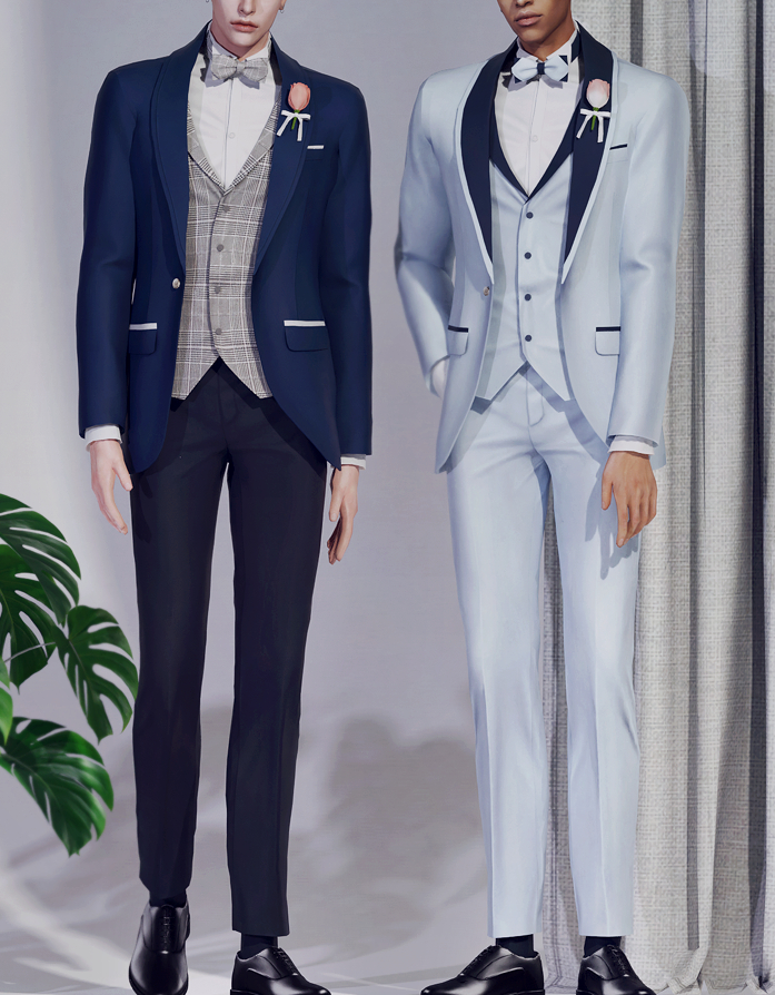 СС KK Tuxedo — это изысканная, элегантная формальная одежда, которая станет идеальным дополнением к файлу модов вашего сима. Смокинг включает в себя сшитый на заказ жакет с атласными лацканами, жилет, гладкий галстук-бабочку и приталенные брюки. Набор разделен на верх и низ, верх доступен в 15 образцах, в то время как низ представлен в 14 смелых оттенках, включая черный, смелый красный и мягкие пастельные тона. Костюм также поставляется с бутоньеркой, которая доступна в 10 ярких образцах, чтобы добавить изысканный штрих в ваш образ.