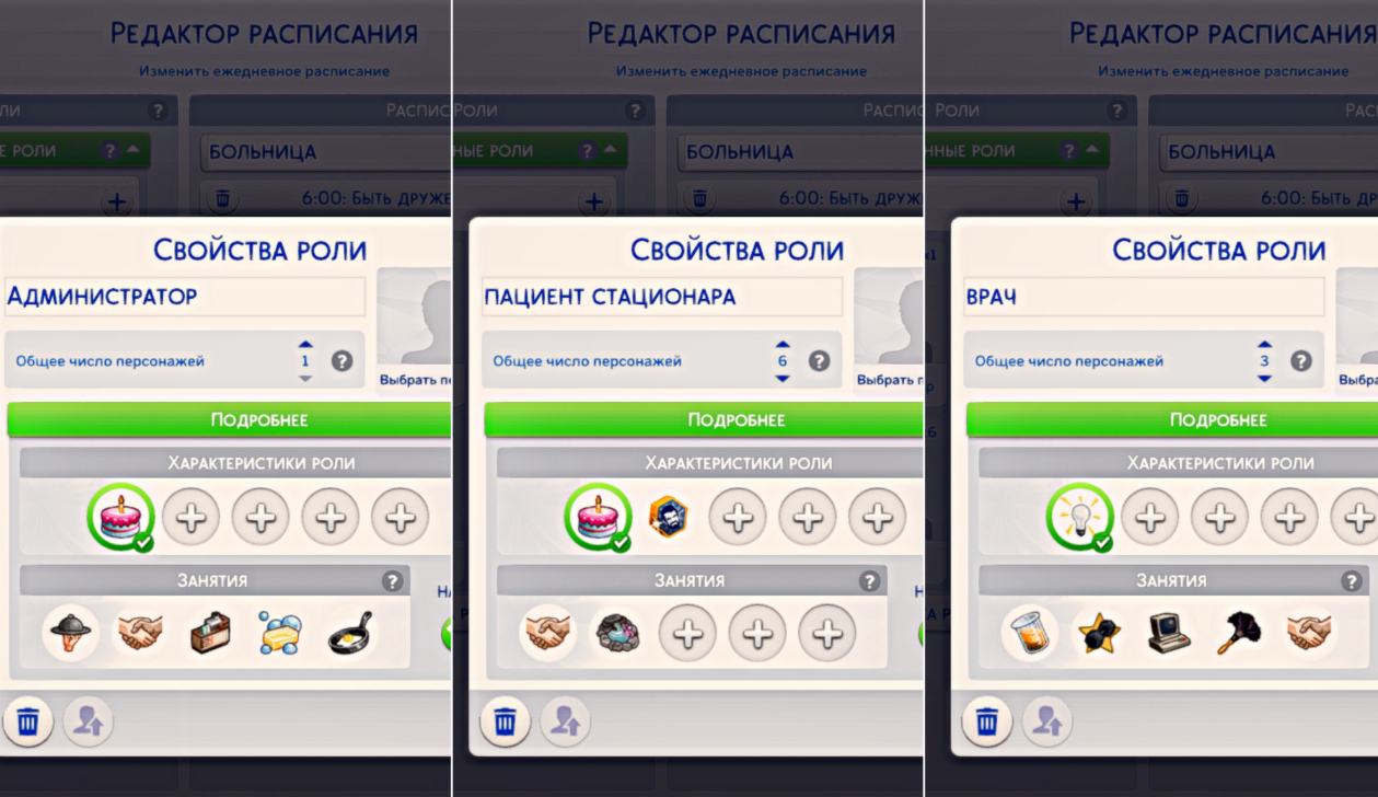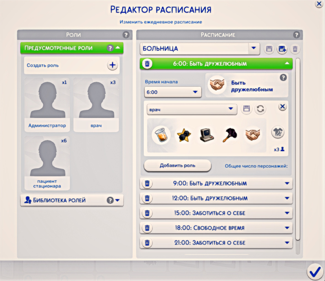 Если вы выберете этот участок для усложнения геймплея, то автор настроил расписание для врачей, персонала, пациентов и гостей. Но также добавил те объекты, которые необходимы для обычной больницы.