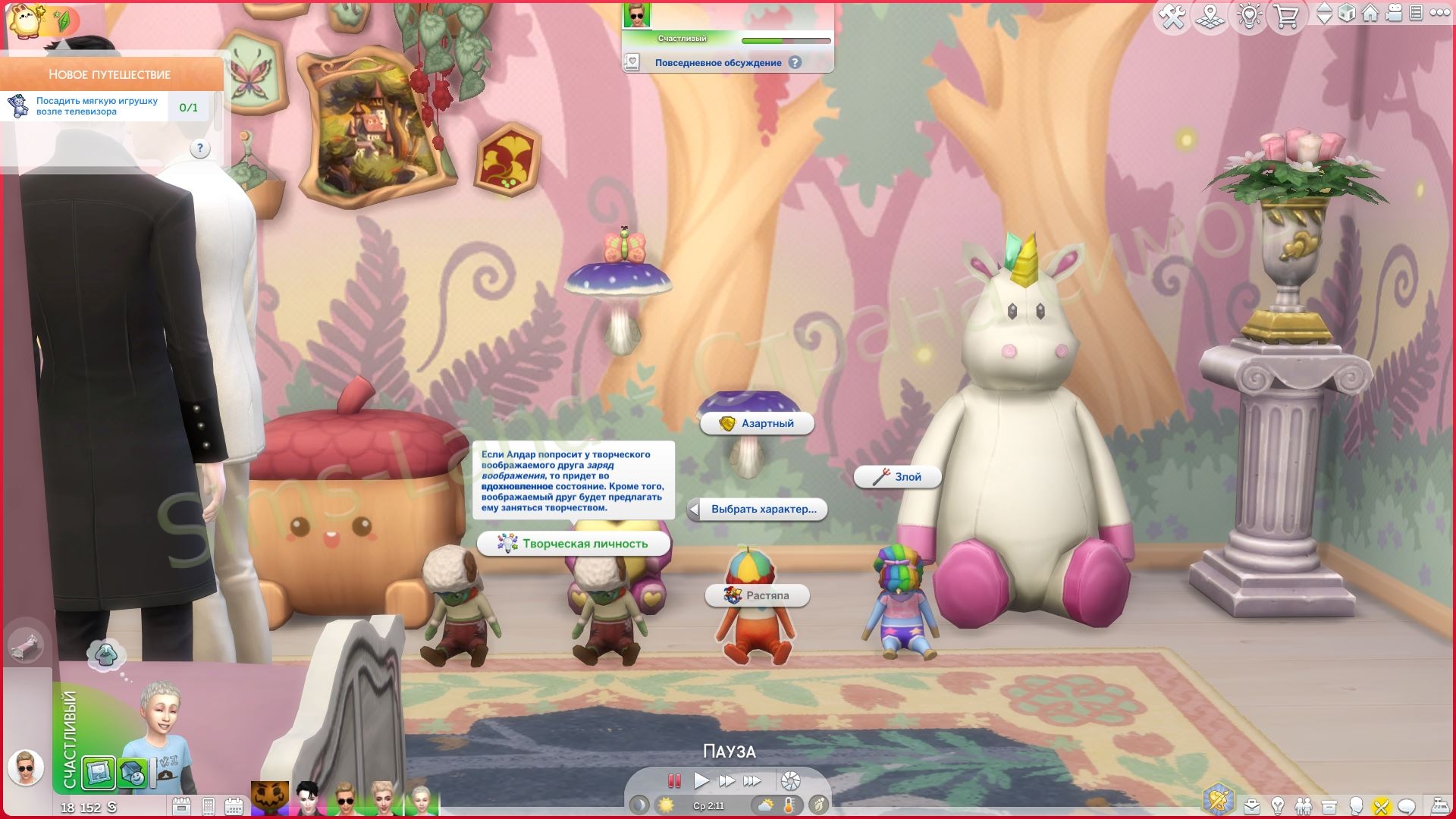 Общение с воображаемым другом также может дать вашему персонажу определенные настрои, которые заставят его почувствовать себя счастливым или даже творческим, в зависимости от выбранного вами типа.