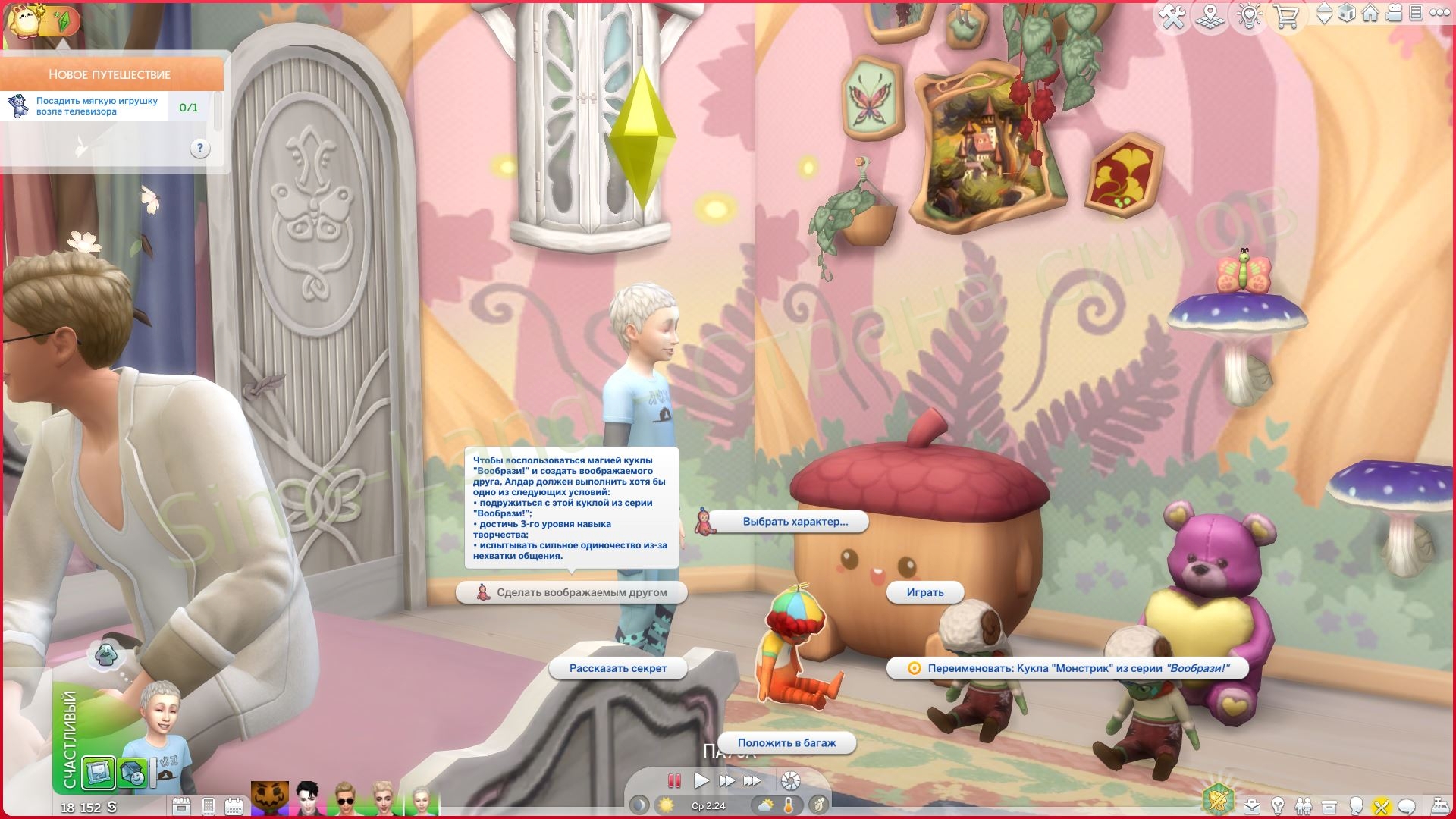 В то время как в вашей семье может быть несколько кукол «Вообрази!», у симов может быть только по одному воображаемому другу. Остальные так и останутся куклами.