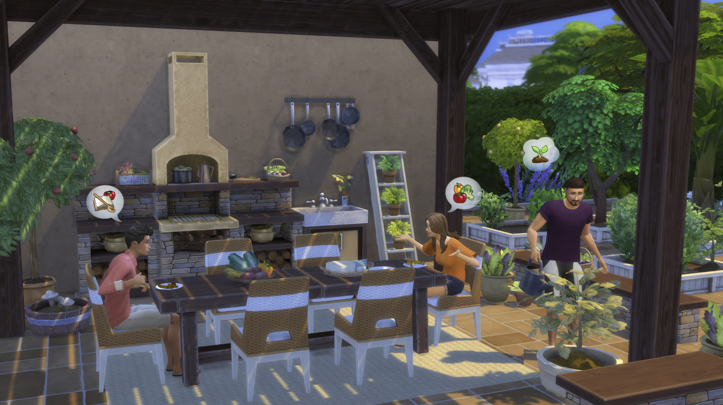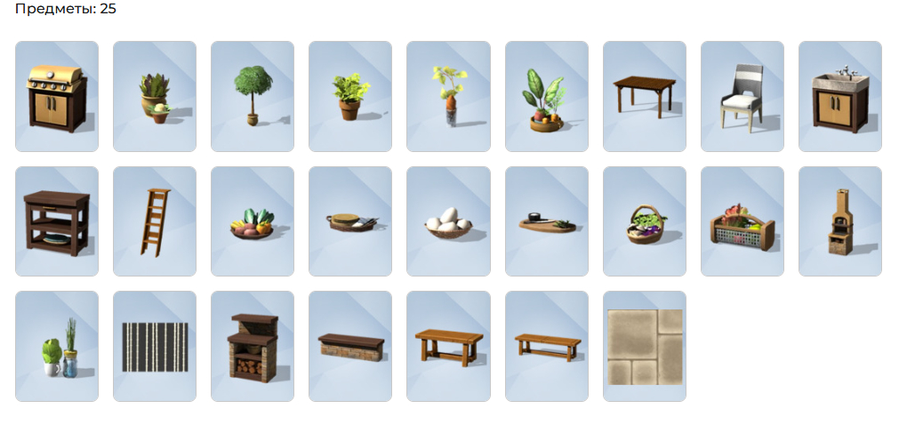 Превратите свою обеденную зону на открытом воздухе в деревенское уединение, где домашний урожай является краеугольным камнем приема пищи с помощью набора «The Sims™ 4 Только с грядки». Сочетайте деревенский шарм и современный стиль с универсальной мебелью из натурального дерева и гладкого сложенного полевого камня. Натуральные материалы обеспечивают органическое тепло, а металлические и керамические детали добавляют современный стиль. Сделайте его нейтральным, чтобы создать деревенский вид, или добавьте яркие цвета для современного поворота. Свяжите все это воедино и оживите свое открытое пространство с помощью декора в овощном стиле и пышных горшечных растений.