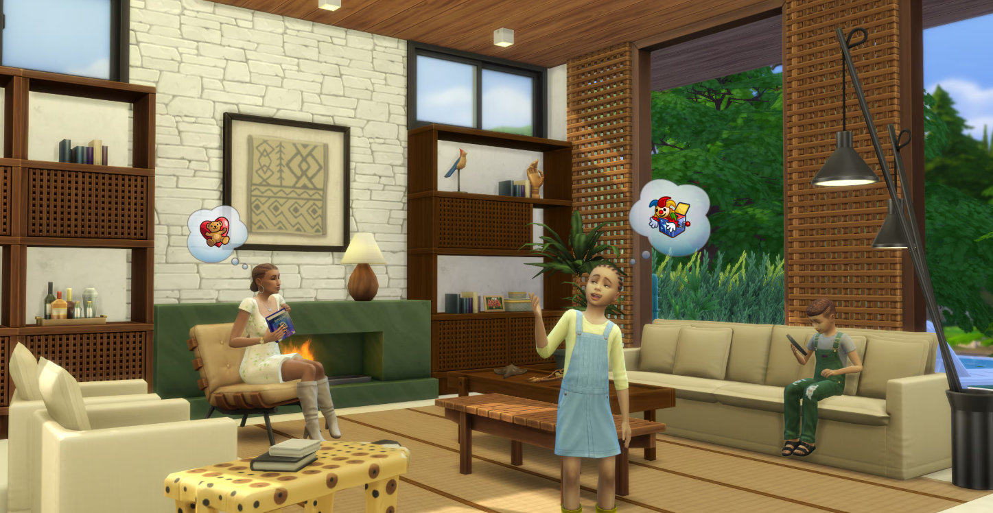 Ваших симов ждет комфорт, стиль и единение с окружающим миром вне зависимости от того, отдыхают ли они на диване после борьбы с насекомыми, читают книгу у мраморного камина в холодный вечер или пьют кофе за журнальным столиком после долгой пешей прогулки.