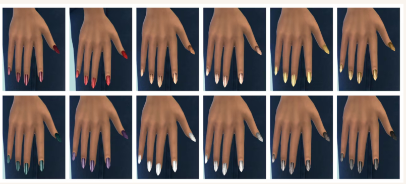 А для любителей креативных симов — наслаждайтесь новыми дизайнами ногтей на полном спектре образцов. В редактор создания персонажа добавлены 12 роскошных металлических покрытий и покрытий цвета драгоценных камней для ногтей миндалевидной формы.